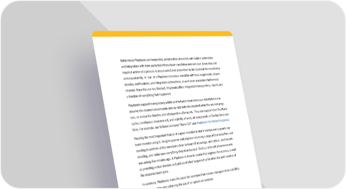 6 Best Practices for Software Development with Mattermost Mattermost Playbooks are templated, collaborative checklists with built-in automation and integration with third-party tools that a team can follow over and over. Every step and required action of a process is documented and prescribed by the playbook for consistency and repeatability. A `run` of a Playbook includes a checklist with task assignments, depen - dencies, notifications, and integrated automations, as well as an associated Mattermost channel. Once the run has finished, Playbooks offers integrated retrospectives, reports and a timeline of everything that happened. Playbooks support transparency within and between teams because stakeholders can observe the channel conversation side-by-side with the checklist while the run is in prog - ress, or review the timeline and retrospective afterwards. They also support short feedback cycles, continuous improvement, and visibility of work, all components of DevOps best prac - tices. For example, our fictional company “Acme Co” uses Playbooks for incident response . Possibly the most important feature of a good checklist is that it enables and supports any team member using it. Imagine your on-call engineer receiving a page at 3am local time and needing to perform all the necessary steps to head off an outage, alert others, start trouble - shooting, and make sure everything they do is tracked. That’s a lot to ask of someone who was asleep five minutes ago. A Playbook is there to enable that engineer for success, as well as providing a clear timeline and picture of what happened so far when the next member of the response team joins. In summary, Playbooks make life easier for everyone from release managers to on-call SREs by documenting and enforcing the use of an agreed-on process: 1. Use it for incident response 2. Use it for software releases 3. Use it for testing and QA procedures 4. Finally, use it to inform retrospectives and postmortems, which are important be - cause that’s where teammates can feel safe in sharing their opinions and experiences. Everyone is invited to contribute in an open format that encourages honest feedback and constructive suggestions for improvement. Those suggestions can then be worked back into the playbook to continuously improve the process and the team. Kaizen!