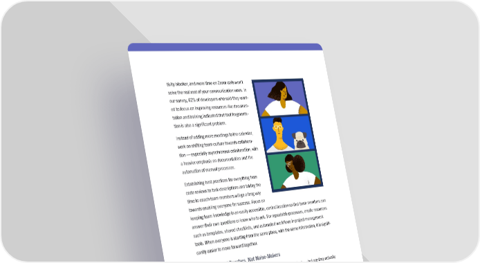 17 Mattermost | Unblock Your Workflow tivity blocker, and more time on Zoom calls won’t solve the real root of your communication woes. In our survey, 62% of developers who said they want - ed to focus on improving resources like documen - tation and training indicated that tool fragmenta - tion is also a significant problem. Instead of adding more meetings to the calendar, work on shifting team culture towards collabora - tion — especially asynchronous collaboration, with a heavier emphasis on documentation and the automation of manual processes. Establishing best practices for everything from code reviews to task descriptions and taking the time to coach team members will go a long way towards enabling everyone for success. Focus on keeping team knowledge in an easily accessible, central location so that team members can answer their own questions or know who to ask. For repeatable processes, create resources such as templates, shared checklists, and automated workflows in project management tools. When everyone is starting from the same place, with the same information, it is signifi - cantly easier to move forward together. Look for Signal Boosters, Not Noise-Makers You probably have more than a few collaboration tools in your stack — but are they actually enabling collaboration? The right tools can break through information silos and help teams function at their best, whether they’re in the same city or spread across time zones. Unfor - tunately, many teams use collaboration tools that don’t serve their needs and leave gaps in their workflows, increasing the amount of context switching they need to do every day. If your team is struggling both with communication and tool fragmentation, it’s time for an audit of the tools your team uses for collaboration and how they’re using them. Defining a